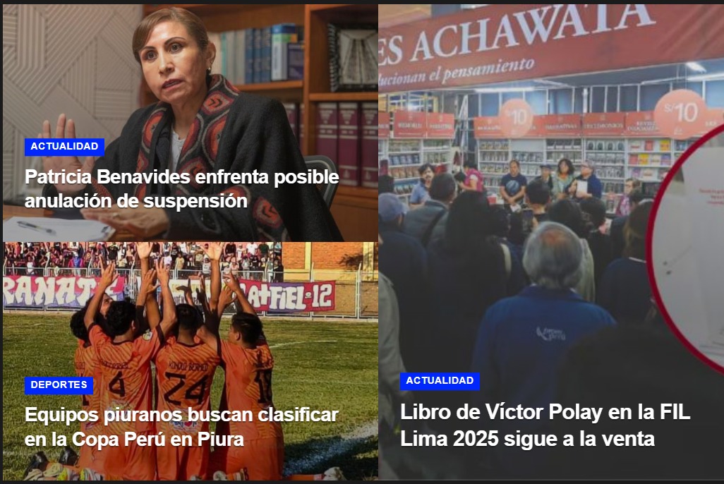 Noticias que conectan con el país, la tecnología y la verdad. Desde Piura, somos una empresa periodística independiente comprometida con informar sin filtros y analizar con profundidad. Combinamos el rigor legal, la mirada local y el poder digital para ofrecer contenido relevante, investigativo y veraz. Aquí, la noticia se convierte en una herramienta para entender, participar y transformar.